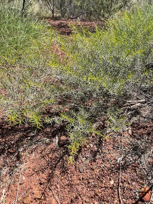 Very distinct low, flat & spreading groundcover from Central NT, usually with a flat-topped or domed canopy. Smooth foliage, yellow cylindrical flowers and sticky seed pods with a citronella/lemon grass scent. Stunning, incredibly hardy small feature wattle for rocky, stoney, gravelly or sandy soil types & garden beds. 0.2-1.5M