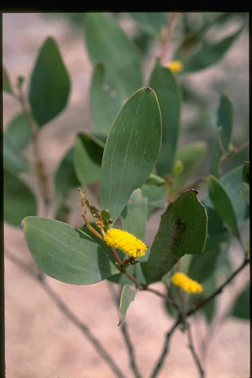 Small to medium densely foliated spreading wattle. Reddish young shoots, short yellow cylindrical flowers. Excellent hardy and fast growing low bushy shrub. More Information. 1-3M
