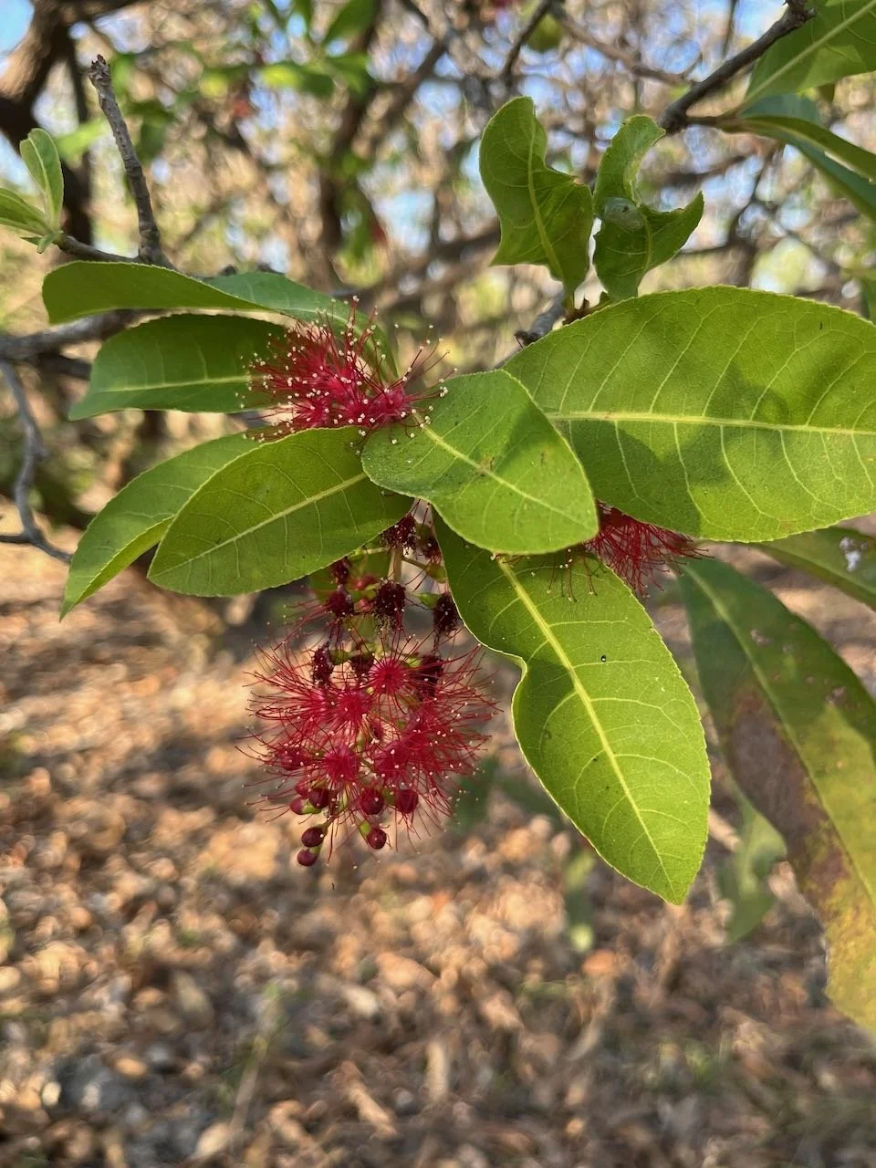 Impressive small tree with handsome low spreading canopy. Becomes covered with bright red pendulous droops of stunning flowers, followed by profusion of four-angled or winged fruit. Mostly shrub but can grow into larger tree. Urban feature or rural planting. More Information. Aboriginal Plant Knowledge. 3-5M