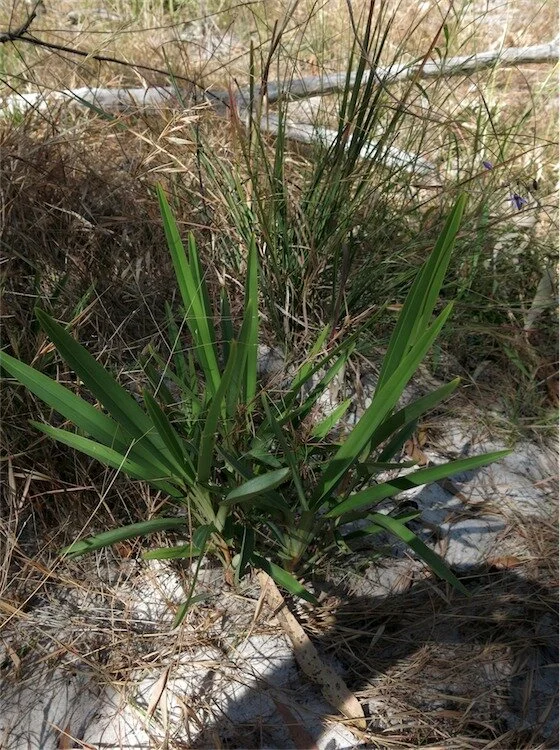 NT Native variant of the common ornamental flax lily. A low tufted solitary pretty plant with blue to purple shiny berries. Excellent simple, neat and tough ground cover shrub or low garden bed filler/ garden edging. 0.8-1M