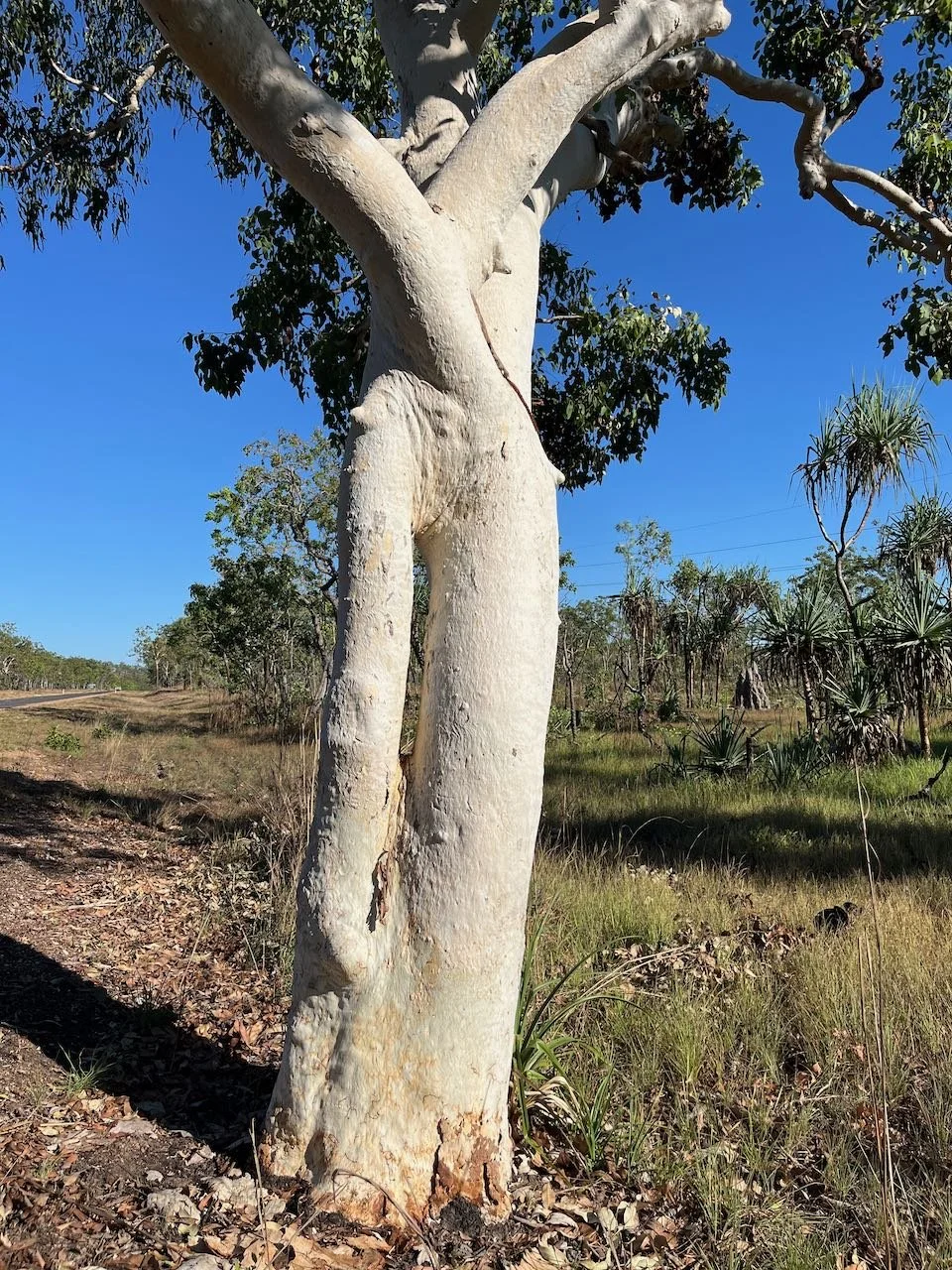 Large attractive evergreen white gum with profuse white flowers through dry season and build up. Hardy and adaptable although prefers moister habitats. One of the Top End's iconic & most distinctive big ghost gum trees. 10-18M