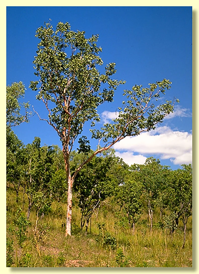 Regarded as one of the most attractive gum trees of the Top End, distinct in its smooth pale orange to creamy-pink bark which turns a brilliant bright salmon-orange colour. Very hardy and adaptable to many kinds of well drained soils. 8-10M