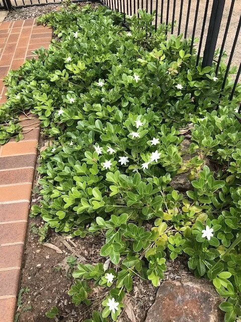 Delicate and attractive native groundcover. Common landscaping species for its hardy nature and relatively fast coverage. Glossy fluorescent green foliage & pretty white tubular flowers make it a very popular choice for low, spreading coverage that can readily be pruned & maintained. Garden edging & borders. 0.2-0.5M