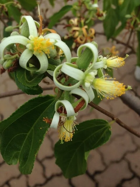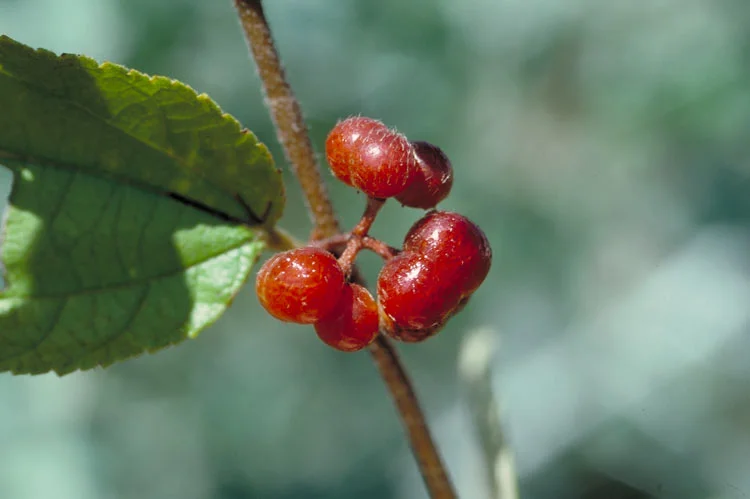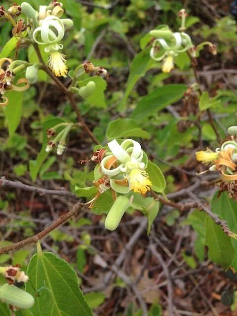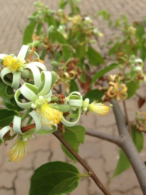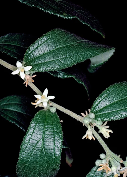 Low rambling shrub with coarse hairy foliage, producing prolific amount of delicious sweet tangy fruit with chewy texture. Important revegetation species and medicinal plant. Tasty low growing edible for suburban and rural garden beds. More information here and here. To 1.5M