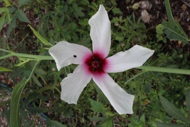 Spectacular fast growing annual ground cover. Dark green variable leaves and stunning large white-pink flowers with maroon-purple centre. Widespread in coastal vine thickets, riparian areas, Melaleuca forests and savanna-sandstone woodlands and shrublands. Grows in laterite, sandstone, clay, coastal sands and limestone. Flowers during the wet and dies off in following dry season, but re-appears readily from seed. Very attractive garden or rockery shrub. More information here and here. 1-2M