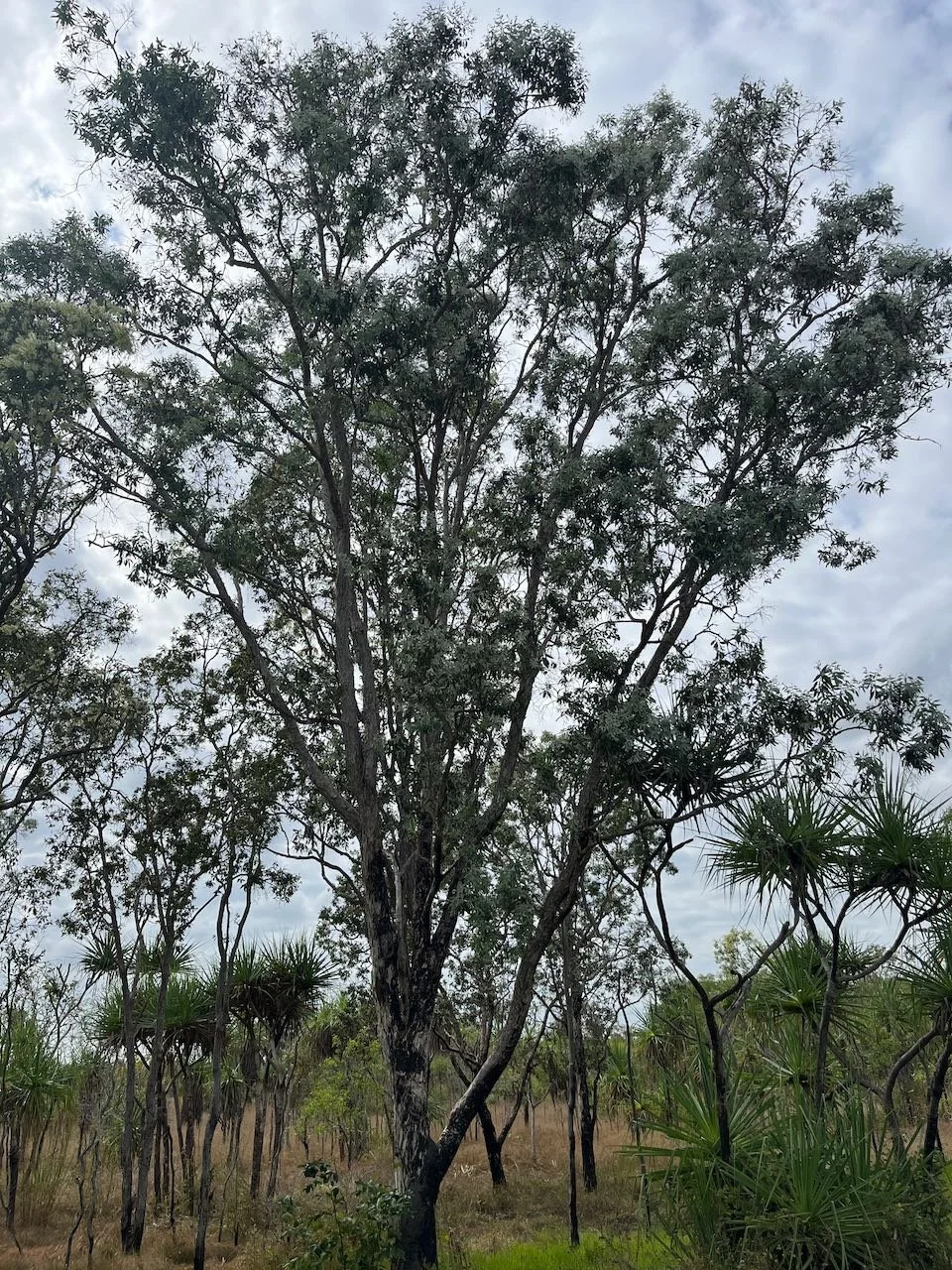 Medium sized spreading paperbark with broad blue-grey leaves, cream flowers and white, papery bark that becomes shaggy. Prefers wetlands or moist areas near fresh water. Can tolerate seasonal inundation & coastal conditions. Common Darwin street planting. 8-10M