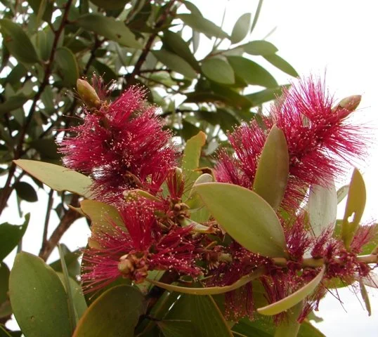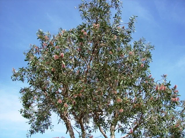 Small to medium paperbark with profusions of bottlebrush flowers. Usually cream, green, yellow-green and occasionally red. Velvety soft grey-green juvenile foliage. Cream to grey fibrous, layered bark. Grows on outskirts of swamps and wetlands. An ideal choice for wetter areas on rural properties, or to bring character and colour to parks and gardens. 2-10M