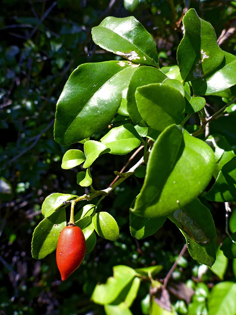 Handsome evergreen screening and hedging shrub with larger green leaves, white scented flowers and red fruit. Can be lifted as feature tree/shrub or easily pruned as dense hedge. Rarely seen in cultivation and present in the NT from three distinct bio-regions. Can reach 5M or be kept pruned 1-2M.