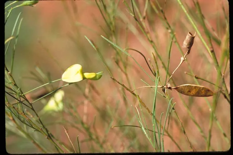 Pretty evergreen shrub with bright yellow flowers and needle thin, yellow-green broom-like pendulous foliage. Useful revegetation species and urban planting for its colour and delicate slender form. Timber used to make Woomeras. 2-3M
